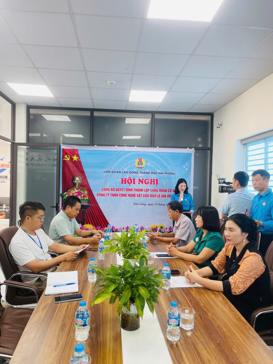 Tại hội nghị, thừa uỷ quyền của Thường trực Liên đoàn Lao động thành phố đồng chí Hoàng Thị Thuận - Chủ tịch Công đoàn xã Tiên Lãng đã công bố quyết định kết nạp 12 đoàn viên công đoàn và quyết định thành lập Công đoàn cơ sở Công ty trách nhiệm hữu hạn Công nghệ Vật liệu giày Lệ Gia Việt Nam.